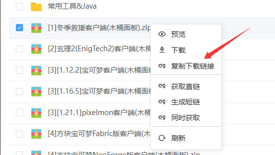 ③返回下载站右键你要下载的预制包并点击复制下载链接