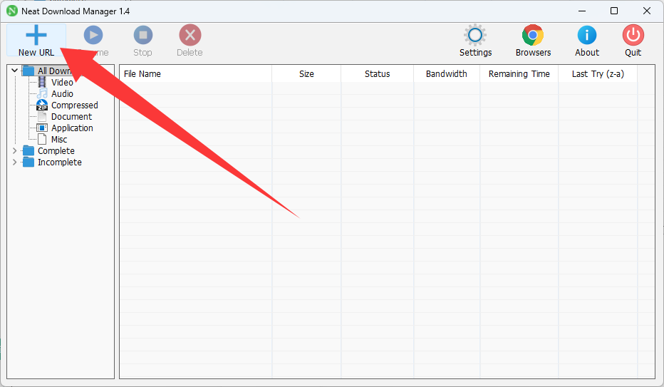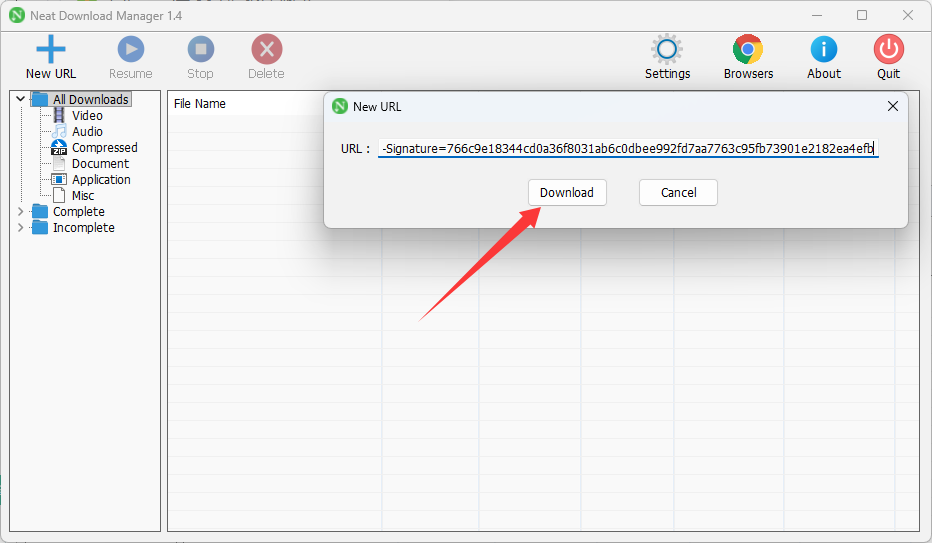 ④返回NeatDM点击左上角的New URL,并粘贴刚刚复制的下载链接点击Download按钮
