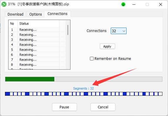 按下图选择32,并点击Apply按钮完成线程修改